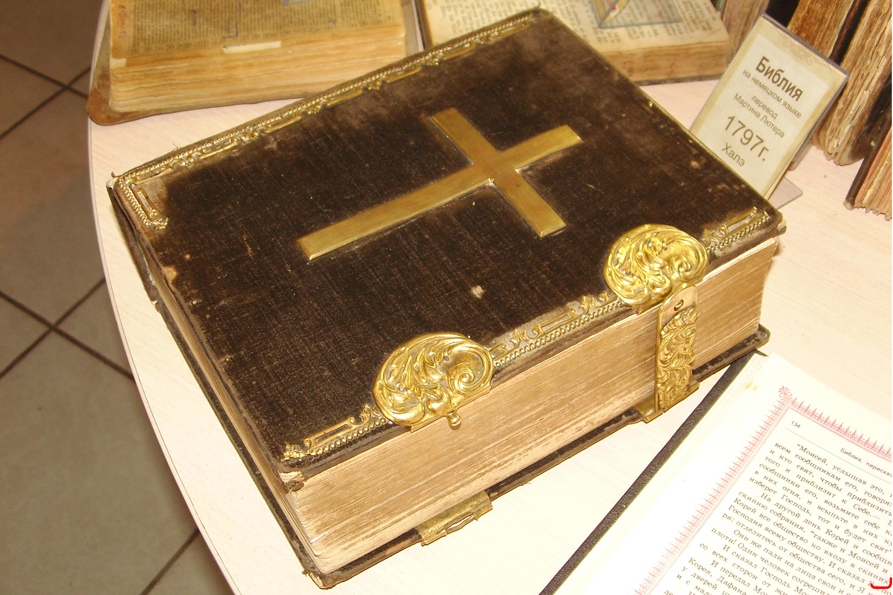 Самый древний экземпляр Библии датируется 1797 годом. Это Библия на немецком языке в переводе Мартина Лютера.
